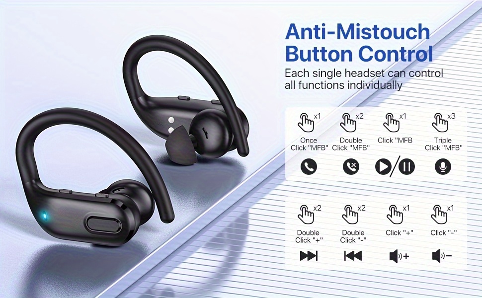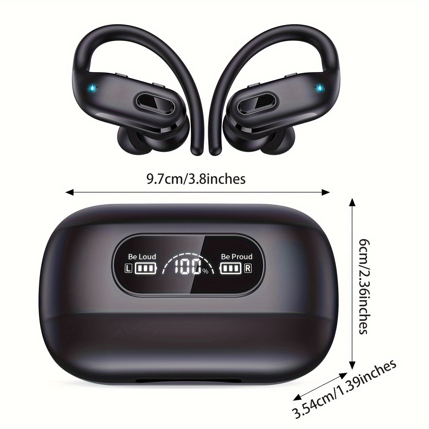 Wireless Headset V5.3 Earbuds 60 Hours Playback Ear Buds with Wireless Charging Case & Dual Power Display Over-Ear Stereo Bass Earphones with Earhooks for Sports/Workout/Running