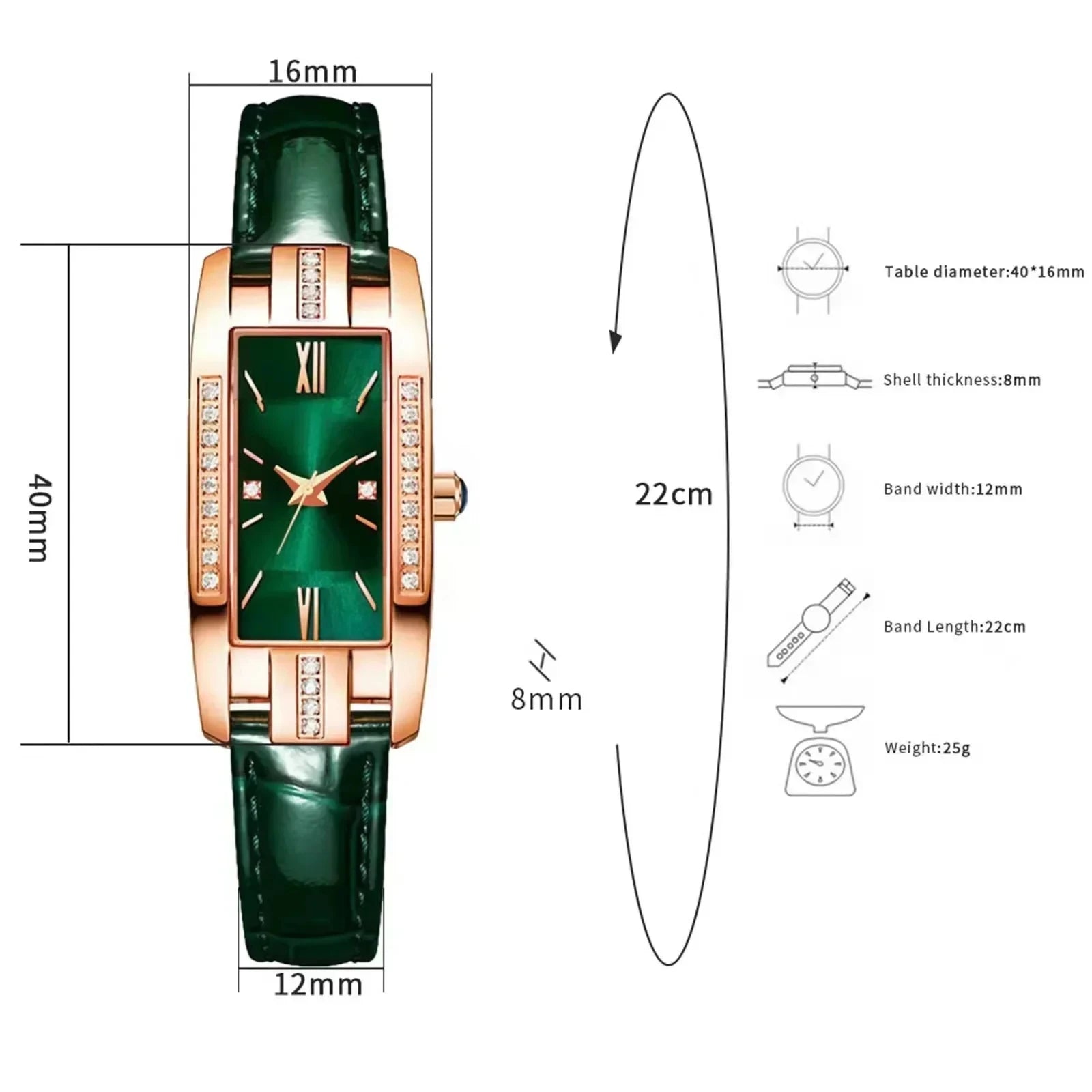 WOKAI high quality classic retro women's belt quartz square green quartz watch Student women's wear clock luxury style