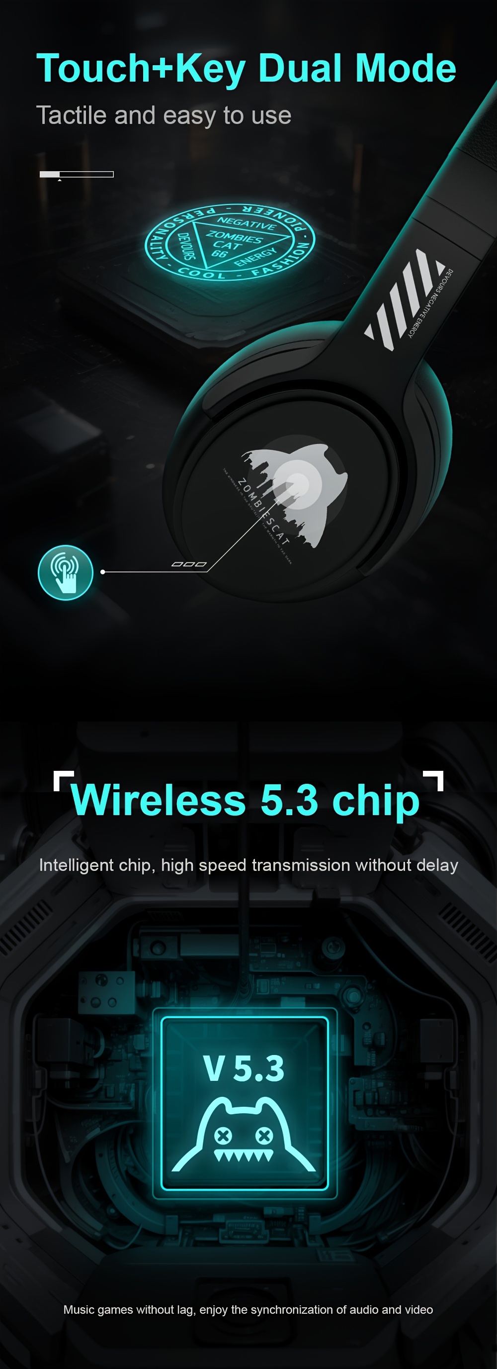 ZOMBIESCAT Wireless Earphones Headworn Wireless Noise Reduction Computer Wired Game 2024 New Ultra Long Range